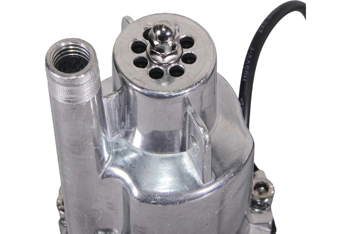 Корпус насоса изготовлен из прочного алюминия, устойчивого к коррозии и механическим воздействиям. Верхний тип забора воды предотвращает всасывание песка и других примесей, что значительно продлевает срок службы насоса. Однако стоит учесть, что данная модель не оснащена системой термозащиты, поэтому необходимо следить за временем работы насоса, чтобы избежать перегрева.