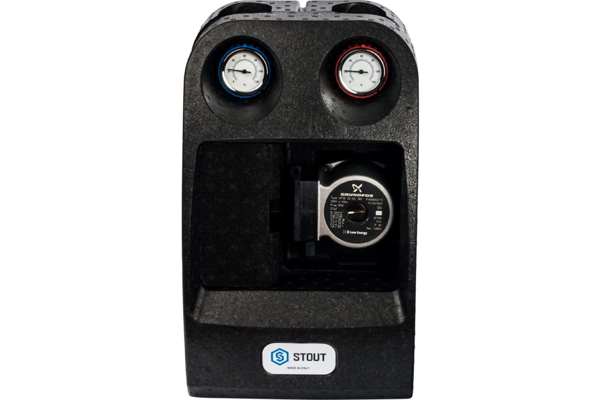 Насосная группа с 3-х ходовым приводным смесителем DN 32 DN 32 STOUT SDG-0007-003202 используется для обвязки котлов, обеспечивая принудительную циркуляцию теплоносителя с возможностью реверса.
