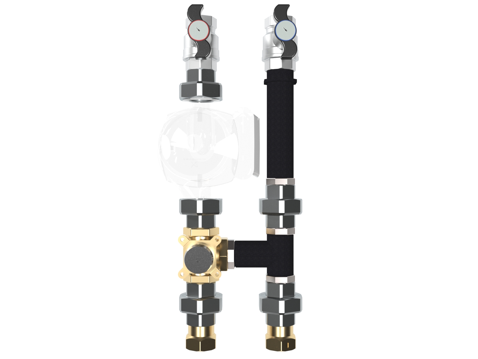 Насосная группа NG-32C с ротационным смесителем Stout предназначена для обвязки контура потребителя с регулируемой температурой (теплые полы, радиаторы).