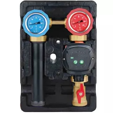 Насосная группа быстрого монтажа Kromwell представляет собой готовый комплект арматуры в сборе (без насоса), предназначенный для принудительной циркуляции теплоносителя в системе. Может применяться в любом прямом контуре, то есть в контуре, в котором теплоноситель подается напрямую от источника тепла без охлаждения: контур радиаторного отопления, контур загрузки бака ГВС, контур вентиляции.
