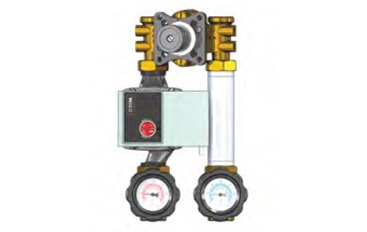 Группа смесительная без насоса, Dn 20. С трехходовым ротационным клапаном поддерживает в отопительном контуре заданную температуру, отличную от температуры подачи котла. Обеспечивает точное регулирование температуры теплоносителя в контуре радиаторного отопления или контура системы теплый пол. На клапан устанавливается сервопривод с трехточечным управлением.