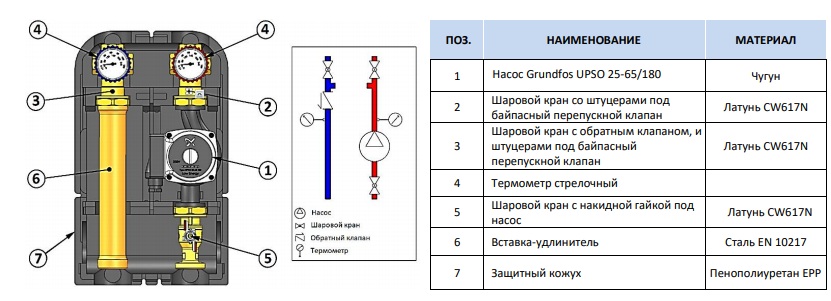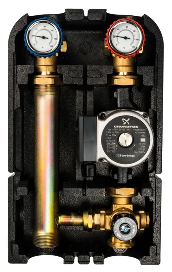 Насосная группа Stout 1"" SDG-0002-002502 с термостатическим смесительным клапаном с насосом Grundfos UPSO 25-65 предназначена для обеспечения принудительной циркуляции и поддержания постоянной температуры теплоносителя в системе отопления, например, в системе типа «теплый пол».