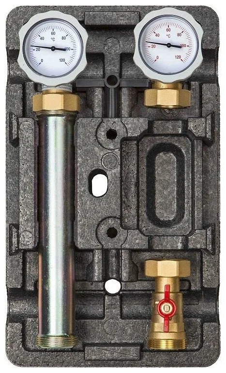 Насосная группа быстрого монтажа NG-MK-0101 представляет собой готовый комплект арматуры в сборе (без насоса), предназначенный для принудительной циркуляции, регулировки и поддержания заданной температуры теплоносителя в системах отопления со смесительным контуром. Чаще всего используется в качестве контура тёплого водяного пола. Эффективность такой системы обеспечивается принципом многократной циркуляции теплоносителя во вторичном контуре с частичным отбором теплоносителя от высокотемпературного источника тепла первичного контура и подмесом теплоносителя из обратной линии. В качестве теплоносителя могут использоваться жидкости, неагрессивные к материалам изделия: вода, растворы на основе гликоля. Максимальное содержание гликоля: до 40%.