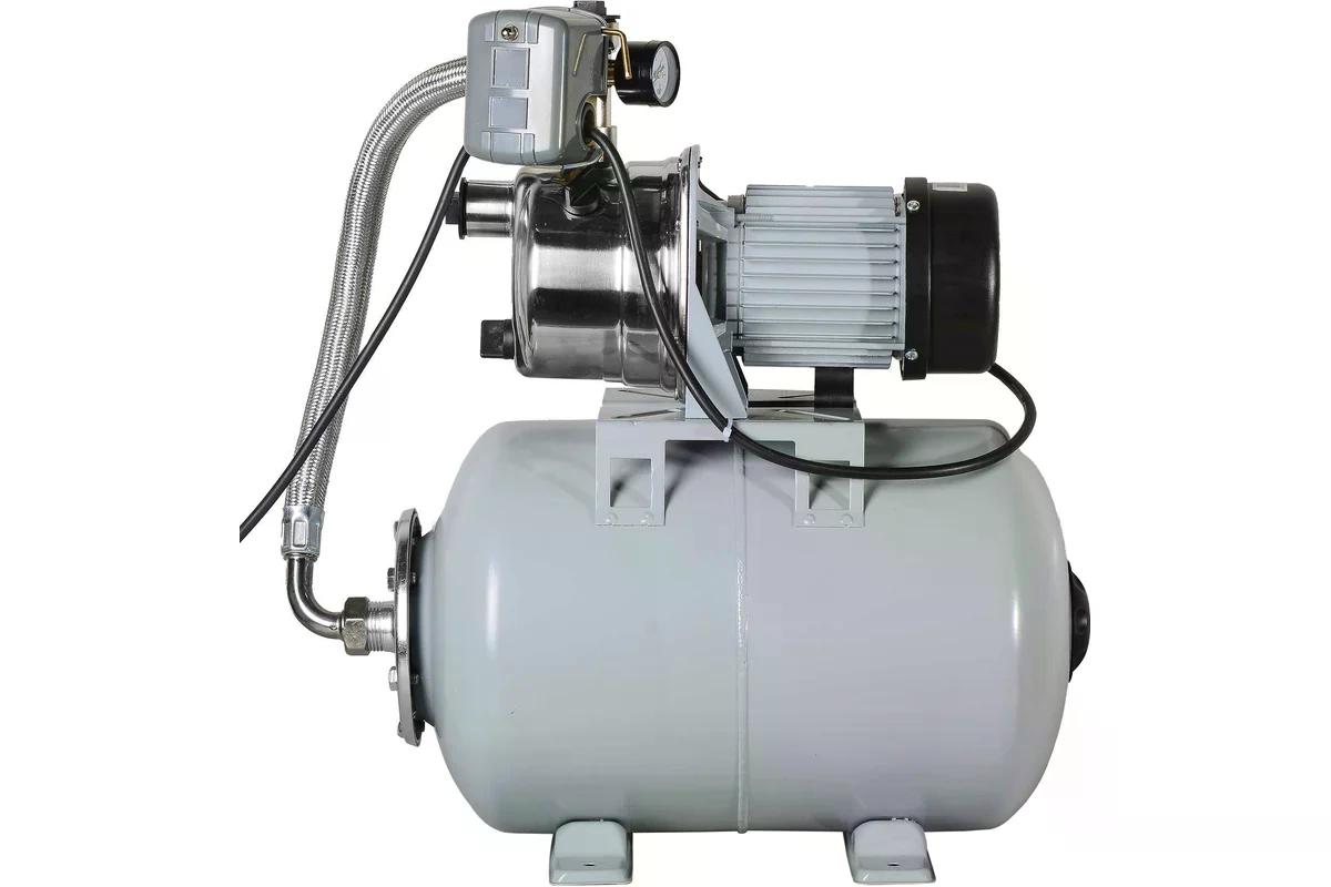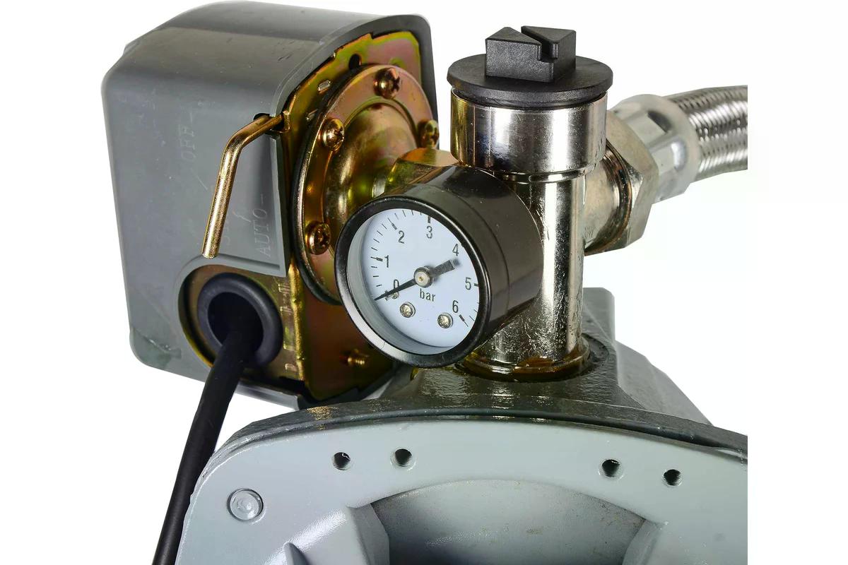 Гидроаккумулятор объемом 24 л служит буфером для накопления воды и снижения числа включений насоса, что значительно продлевает срок его службы. Защита от сухого хода автоматически отключает насос при понижении давления в системе до критического.