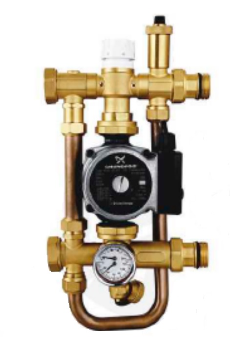 Монтируется на коллекторной группе низкотемпературного контура, подключается к высокотемпературному контуру системы отопления.