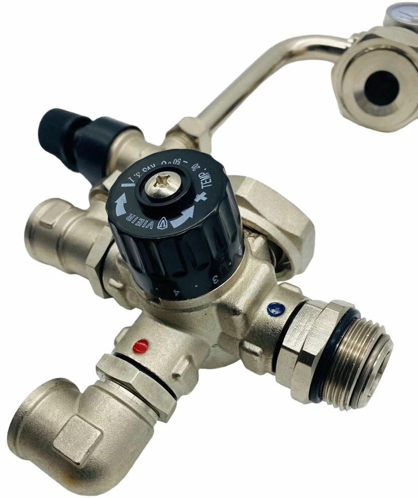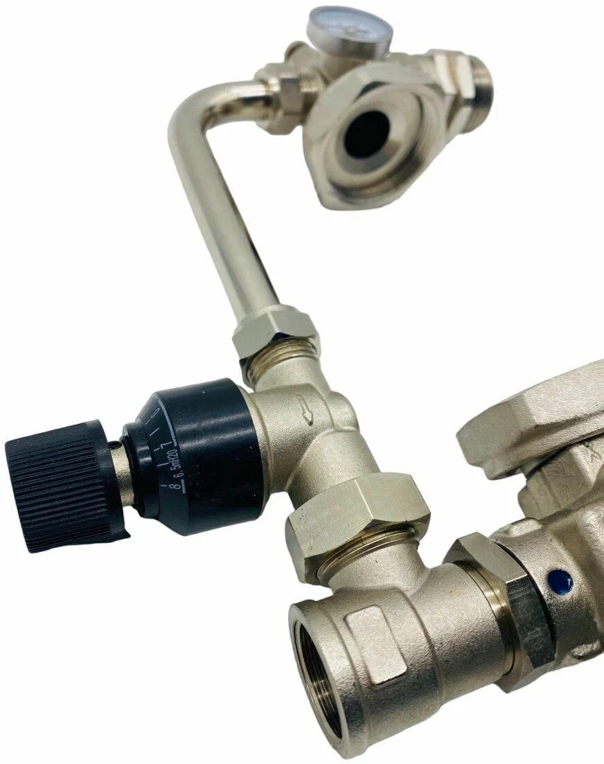 Насосно-смесительный узел с 4-х ходовым термостатическим клапаном предназначен для регулирования и автоматического поддержания температуры в пределах 30-60°С теплоносителя в системах водяного теплого пола. Данный узел скомплектован на основе 4-х ходового термосмесительного клапана. Насосно-смесительный узел не нуждается в напоре из высокотемпературного контура, это позволяет устанавливать его на некотором удаление от тепломагистралей, после гидравлических стрелок и теплообменников. Для обеспечения циркуляции используются циркуляционные насосы с монтажными размерами 130 мм (например ЦН25-4 ЦН25-6) и 180мм (например ЦН25-4-180 ЦН25-6-180). Насос в комплект не входит (приобретается отдельно).