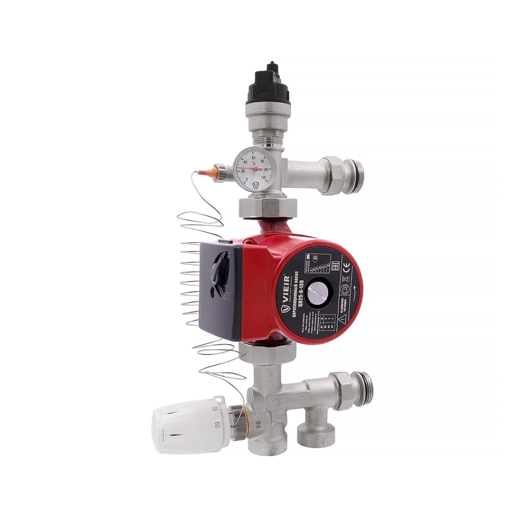 Насосно-смесительный узел Vieir 1” (130/180 мм., без насоса, с термоголовкой 20-60*С) (VR232)