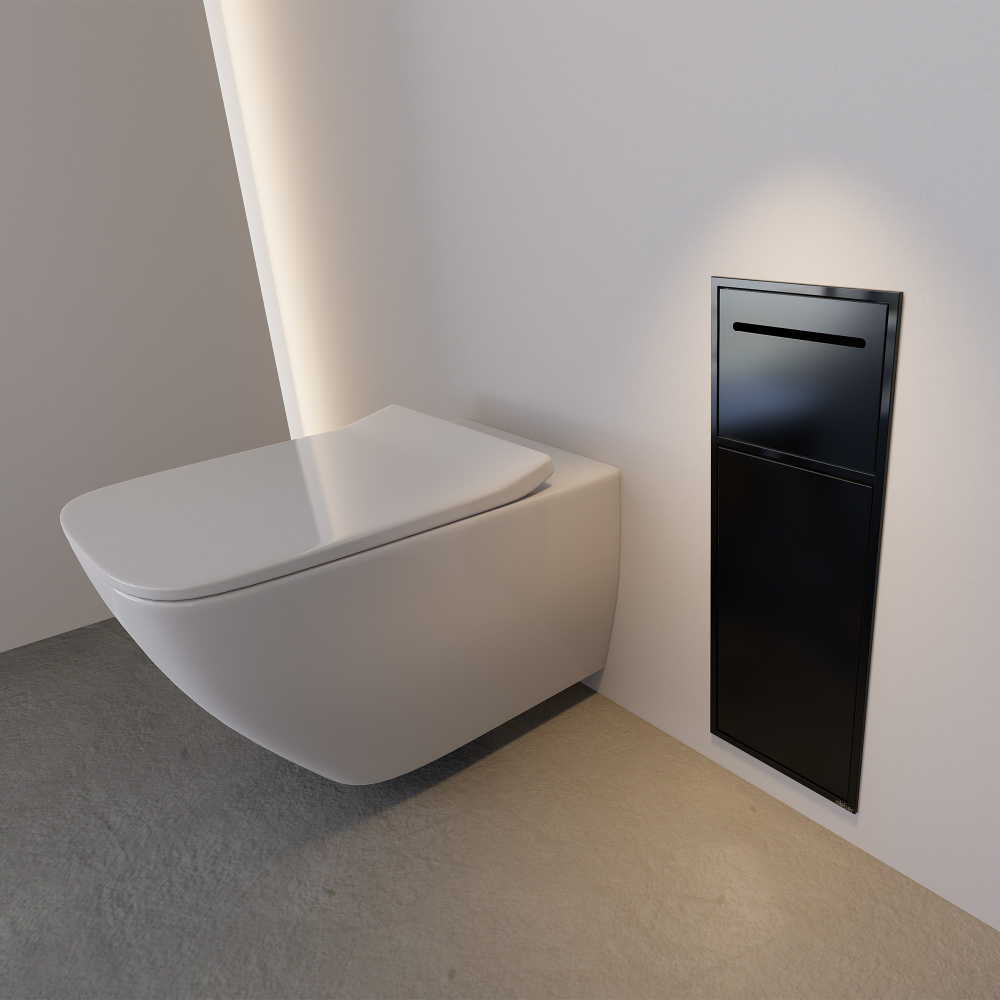 Ниша настенная скрытая Abber Nischen 23x13x60 с корзиной и бумагодержателем, черная матовая (AN3008MB)