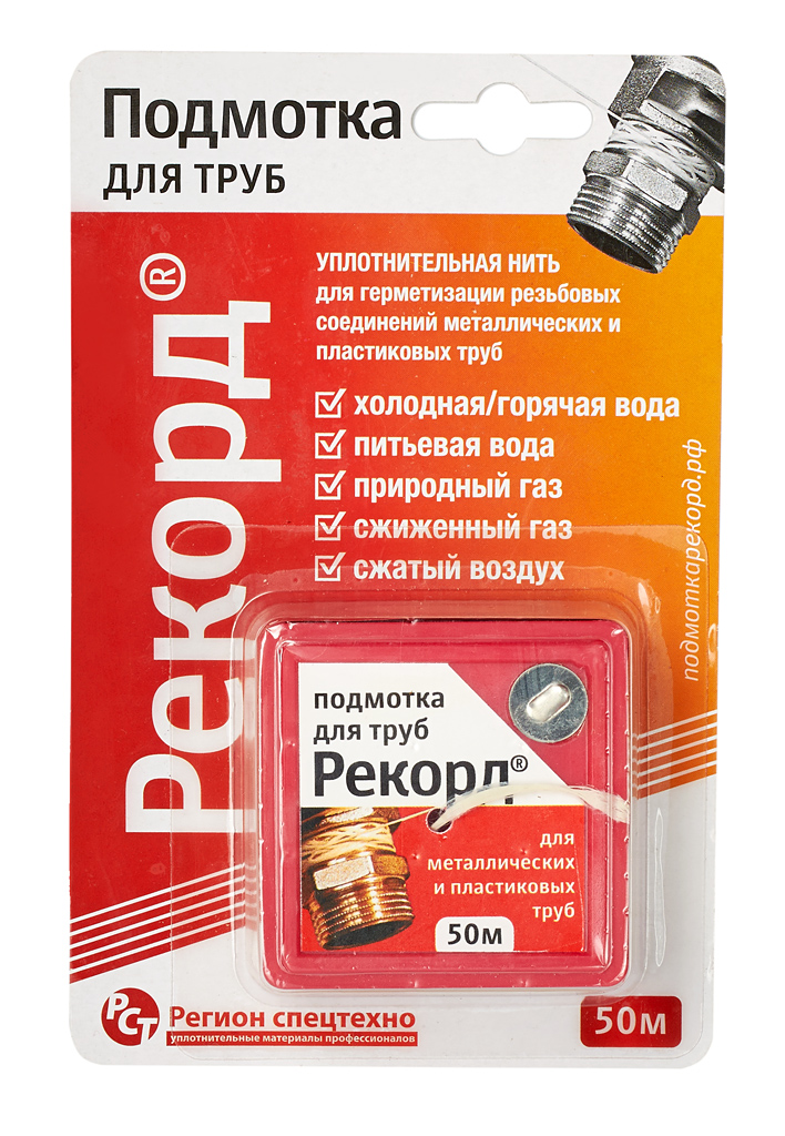 Подмотка для труб «Рекорд» — уплотнительный материал последнего поколения. Ранее такие материалы применялись в сфере обороны, космоса и высокотехнологичного машиностроения, но в настоящее время получили широкое распространение открытом рынке.