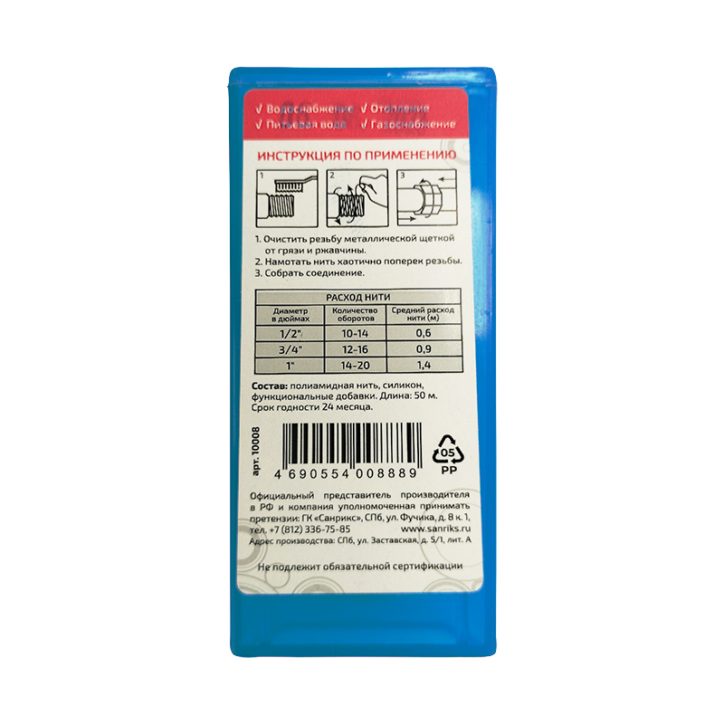 Нить уплотнительная для герметизации резьбовых соединений 50 м TeRma (10008)