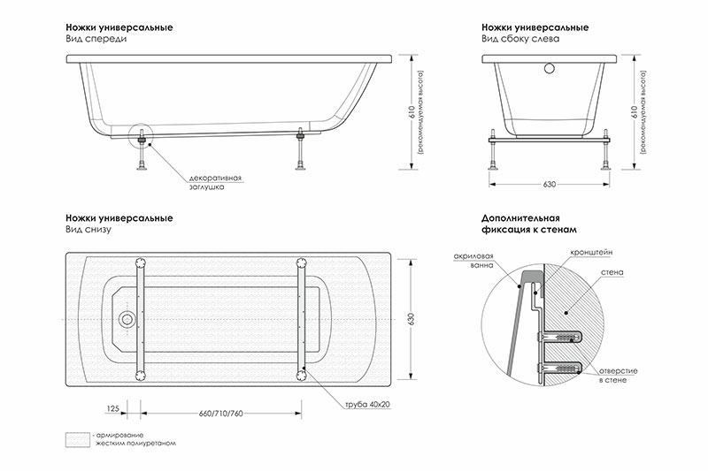 Ножки универсальные, сталь 1,5мм, сечение труб 25*25. Регулировка высоты ножек до 30мм.
