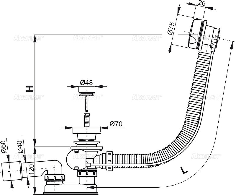 Обвязка для ванны Alcaplast автомат, белая (A51B)