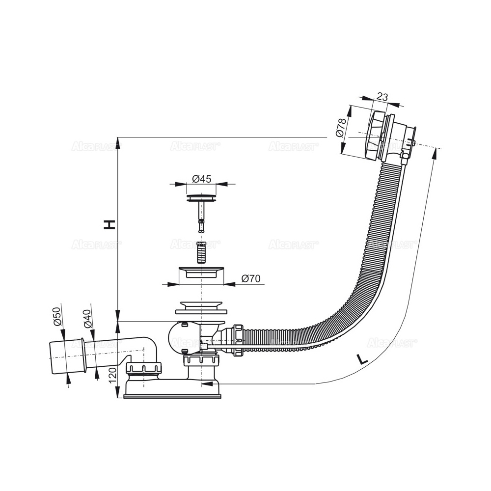 Обвязка для ванны Alcaplast автомат металл (A55K-80-RU-01)