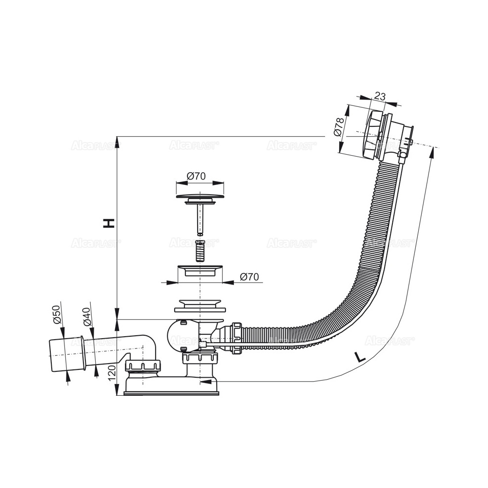Обвязка для ванны Alcaplast автомат металл (A55KM-80)