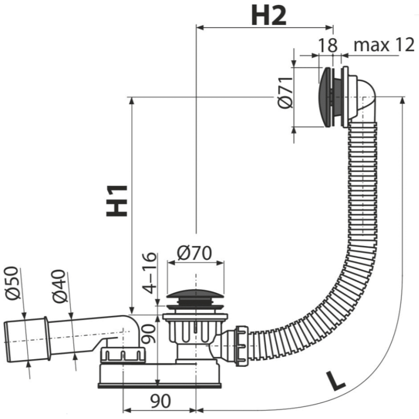 Длина сифона для ванны 57 см