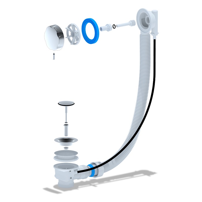 Перелив полуавтомат для ванны без сифона длина троса 580мм материал ручки металл