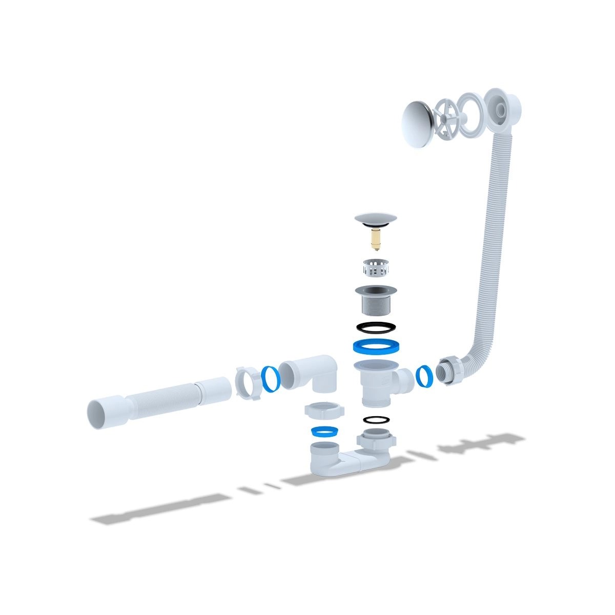 Обвязка для ванны АНИ с выпуском 1 1/2"*40 клик-клак, плоский сифон, с гибкой трубой 375*40/50, (грибок-сетка) АНИ пласт (EC055GS)