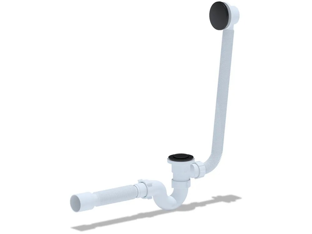 • Сифон сливной АНИ пласт EC155BL для ванны черный с выпуском ""клик-клак"" и переливом.