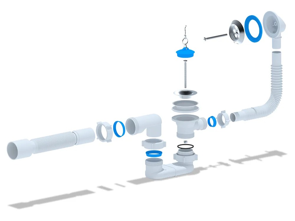 • Для ванн с отверстием слива 50 мм и отверстием перелива от 36 до 63 мм (стандартное отверстие 50 мм)
