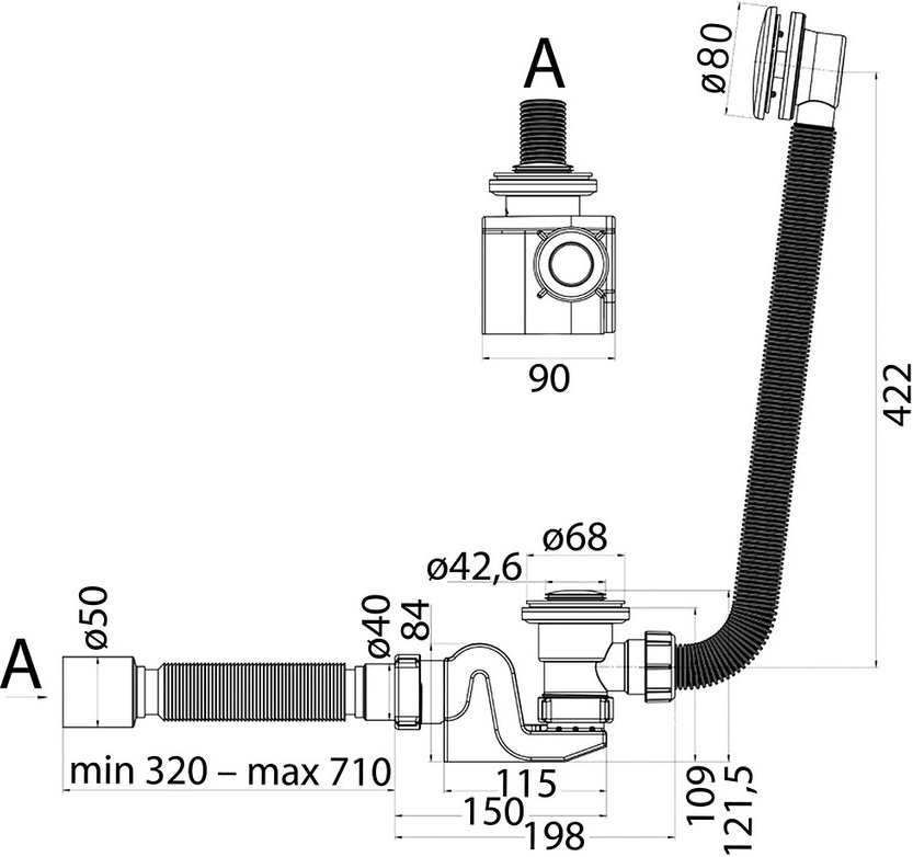 Слив-перелив Cezares CZR STP2 01 (для комплектации BB101 - BB106) c гидрозатвором - Автоматический слив (клик-клак) управляется нажатием на пробку слива.