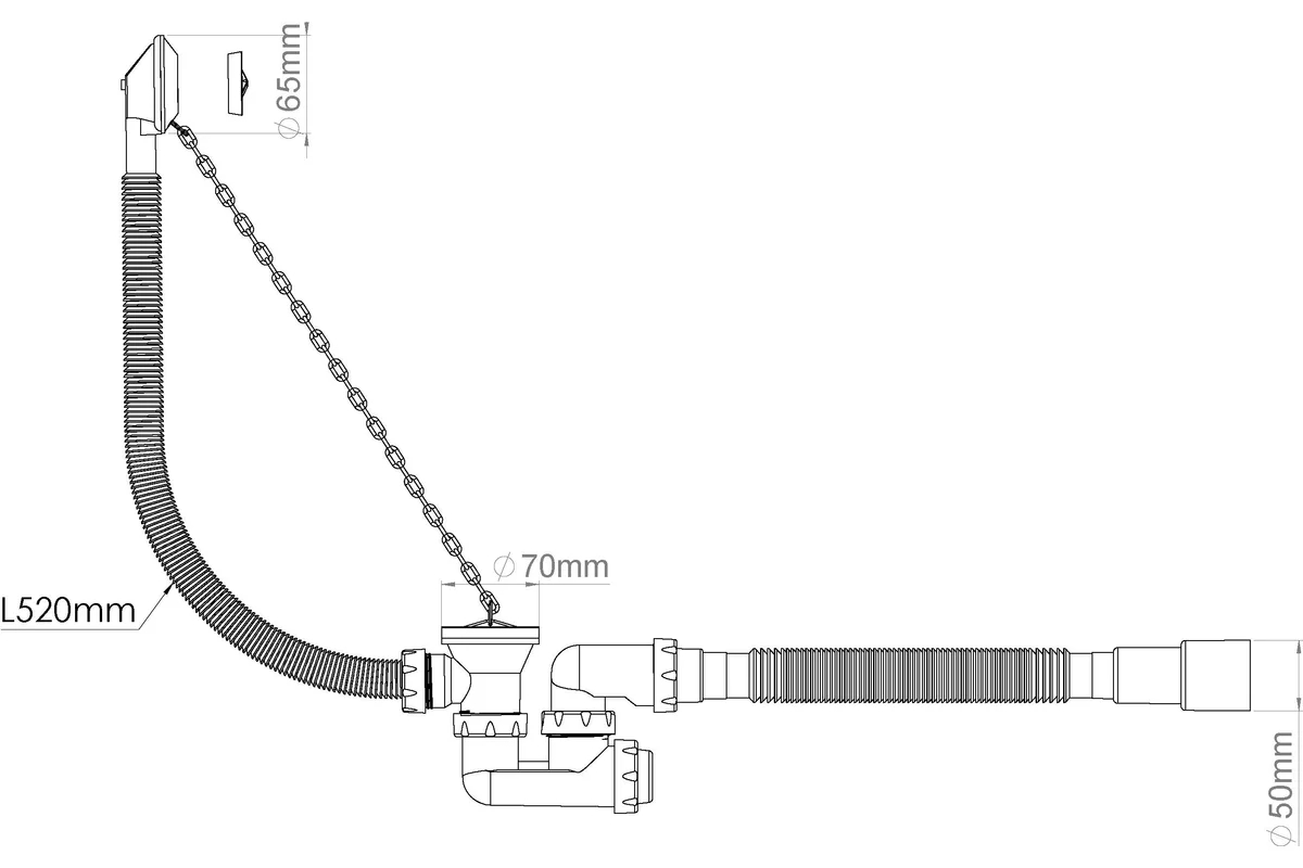 Обвязка для ванны Nova с выпуском 1 1/2"х40 F-образный сифон с гибкой трубой 1 1/2"х40/50 (с пласт. цепочкой) (1525)