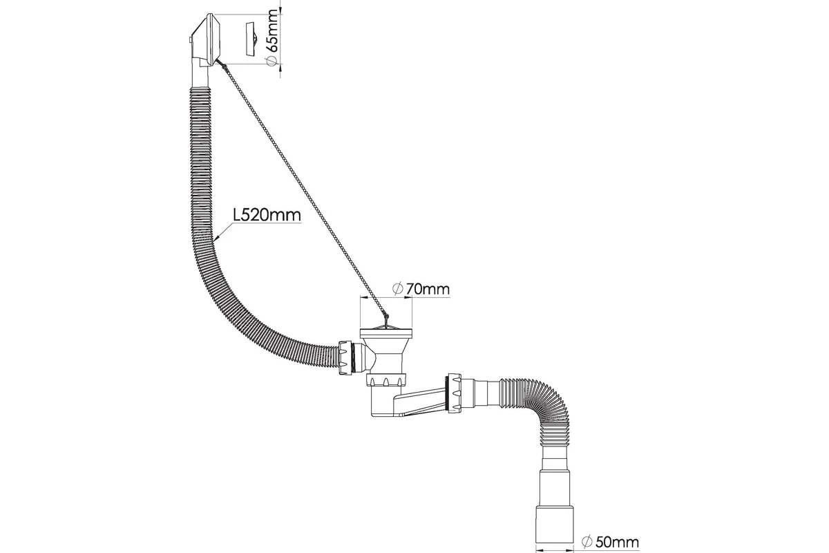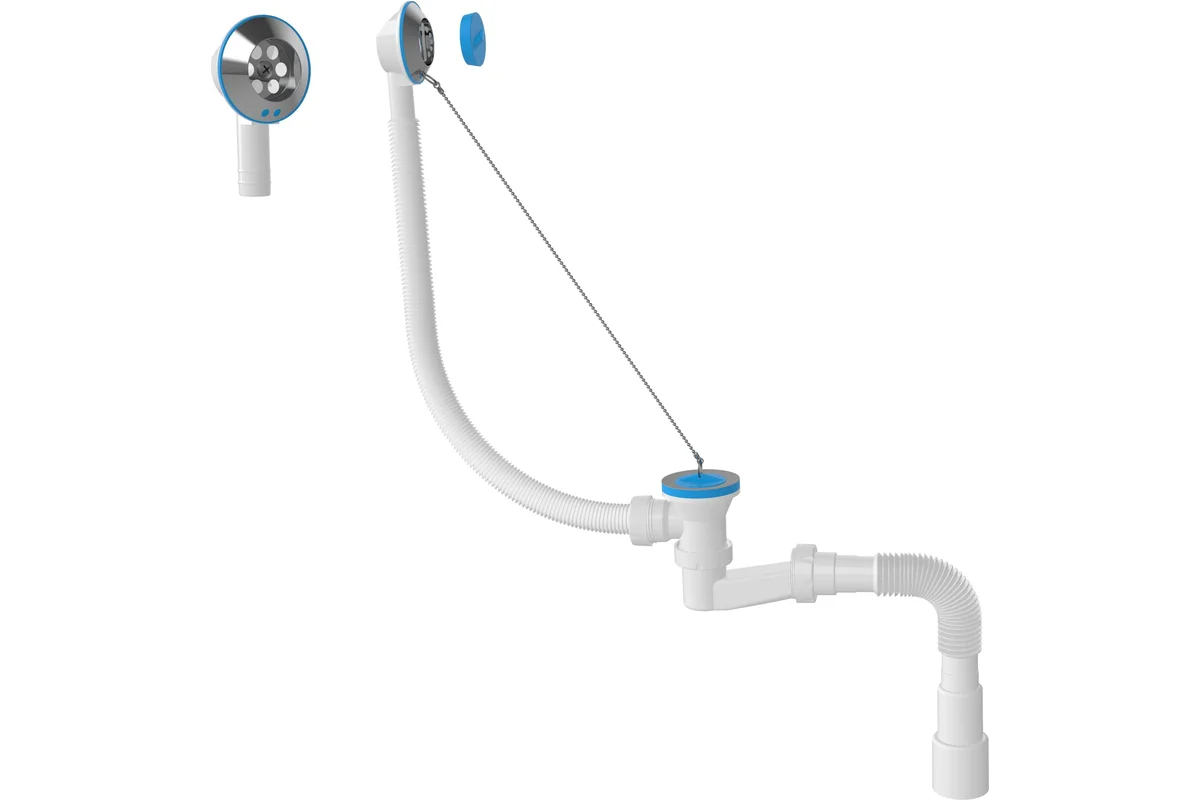Обвязка для ванны Nova с выпуском 1 1/2"х40 плоский сифон (h=120 мм) с гибкой трубой 1 1/2"х40/50 (с метал. цепочкой) (1524)