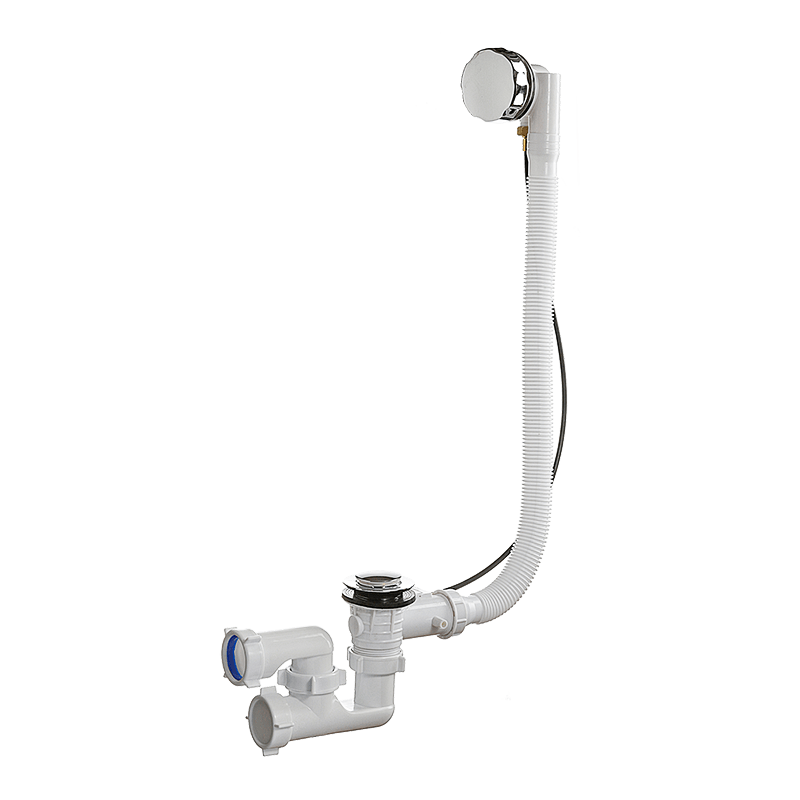 Сифон 1 1/2"х40, с полуавтоматическим сливом (латунь/хром)-переливом (латунь/хром), для ванн и глубоких душевых поддонов. Конструкция сифона позволяет прочищать сифон, не демонтируя его. Необходим отвод в канализацию.