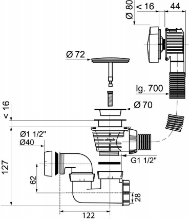 Обвязка для ванны полуавтомат 70 см Jacob Delafon (E6D159-CP)
