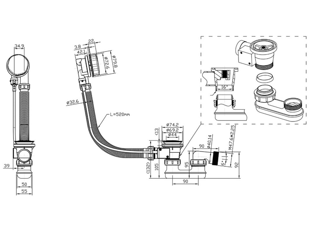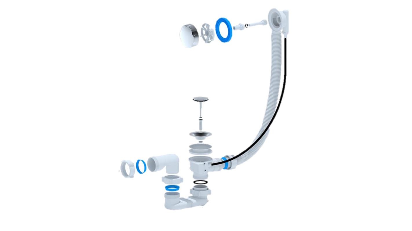 Обвязка для ванны полуавтомат с сифоном плоский 600 мм полуавтомат, металл Triton (CK60PF)