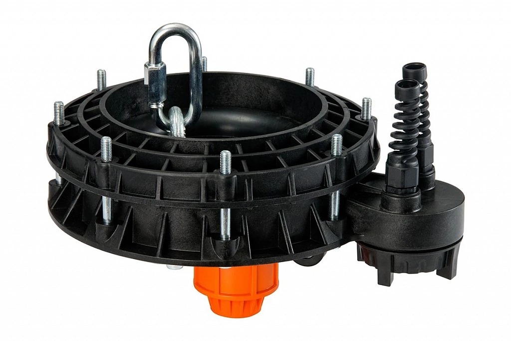 Оголовок предназначен для герметизации устья скважины. Выбор оголовка зависит от наружного диаметра обсадной трубы от 110 до 160 мм и диаметра полиэтиленовой напорной трубы 25,32 или 40 мм.