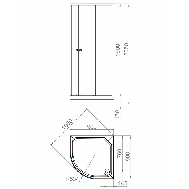 Душевой уголок Melodia Segment Low 90х90x205 бел/прозр,низкий поддон (MSETWSL9090TWt)