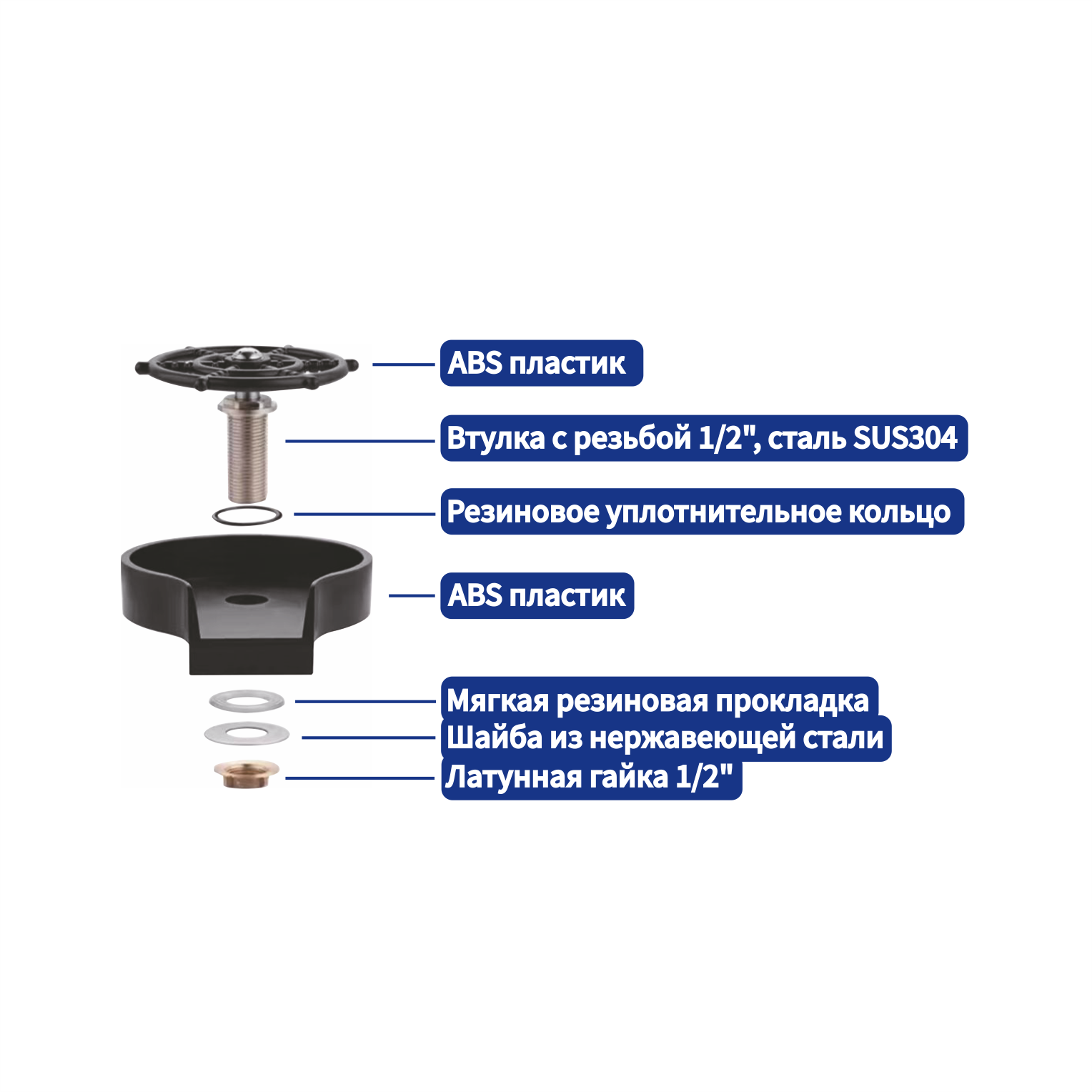 Ополаскиватель стакана Fashun ов для кухоной мойки нажимного типа ABS пластик черный (A407-7)