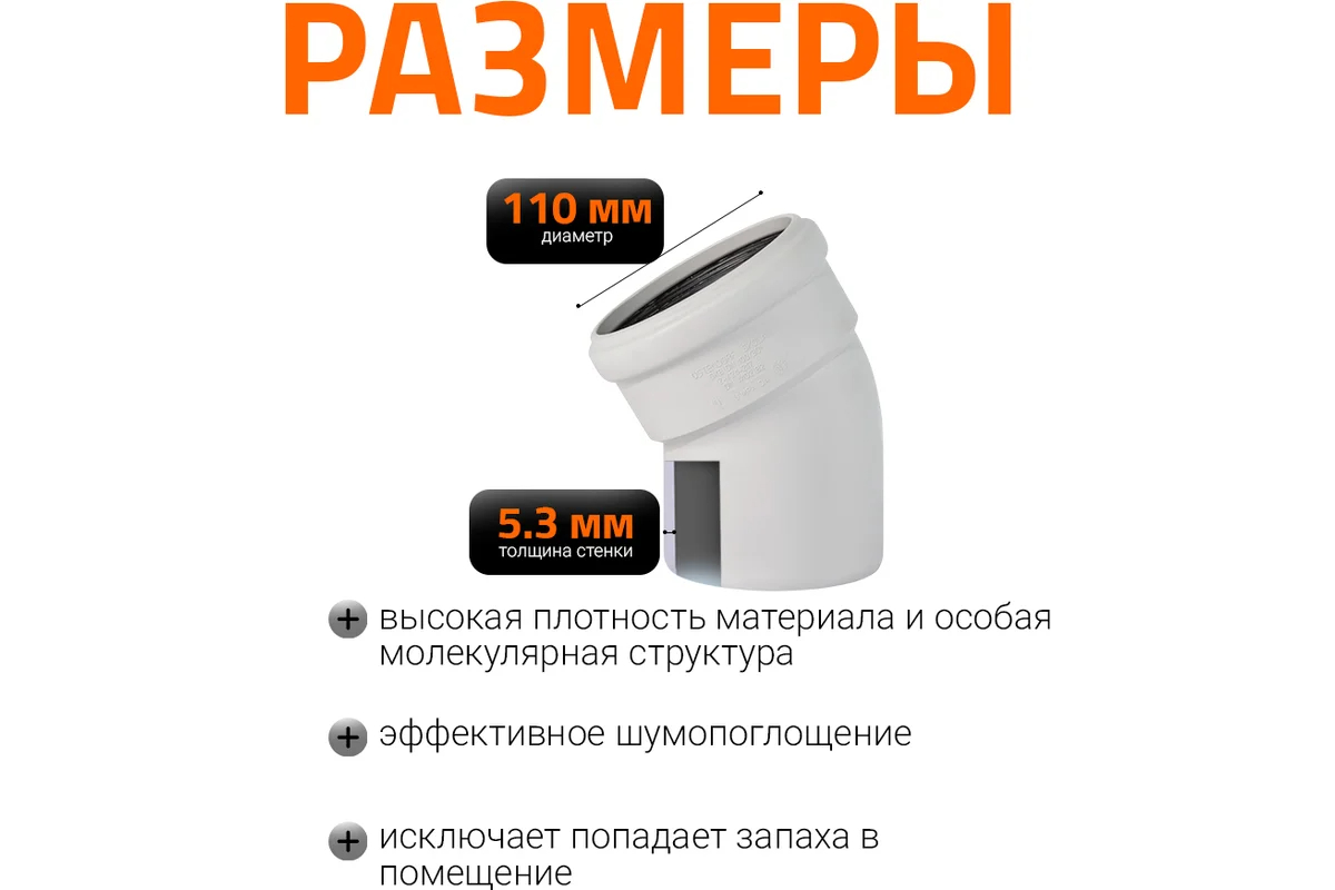 Отвод бесшумной канализации - используется для обустройства поворотов трубопровода и соединению элементов системы под необходимым углом.