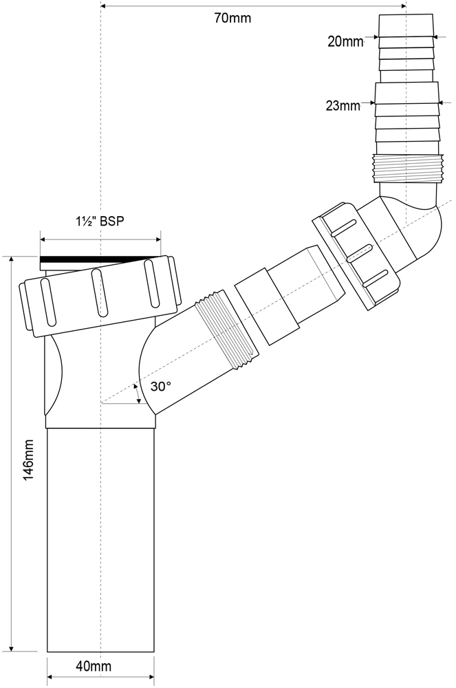 Отвод для подкл. быт. техники McAlpine 40 мм. L-80 мм. (TEE3)