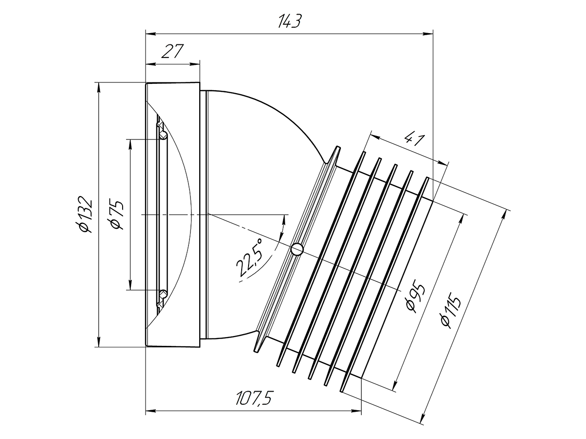 Отвод для унитаза 22,5 град. АНИ (короткий) АНИ пласт (W2228)