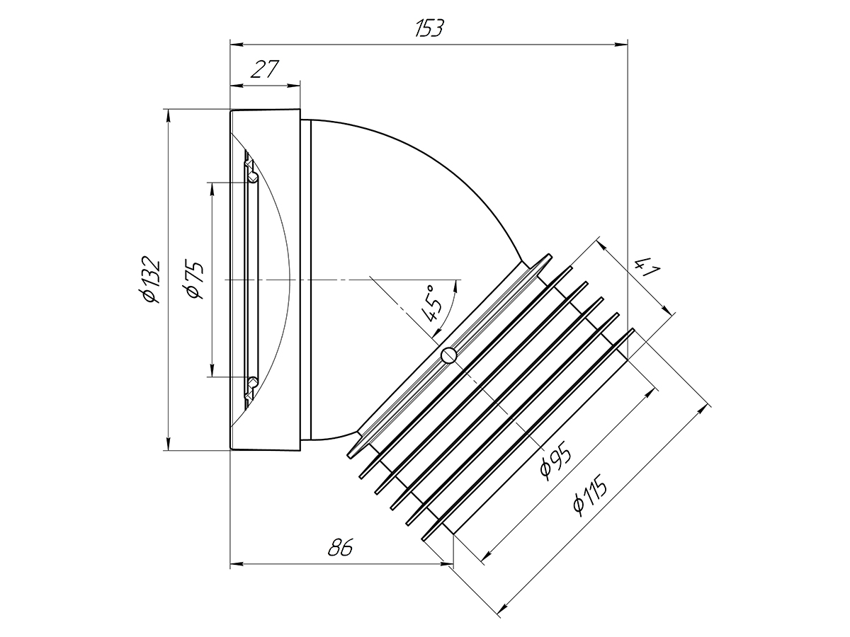 Труба для подключения унитаза к канализации короткая угол 45° диаметр 110мм. Для чугунных труб