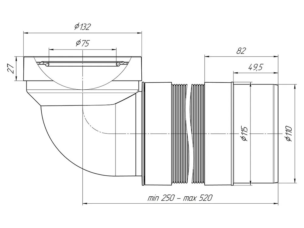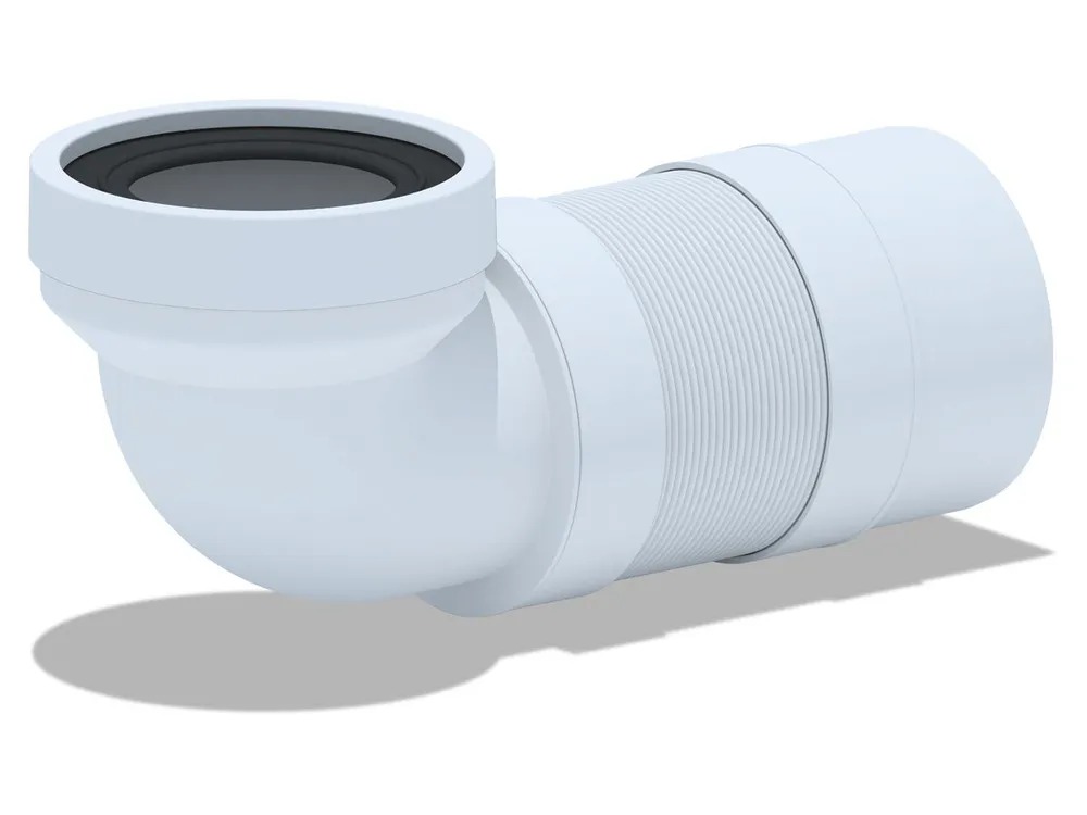 Удлинитель гибкий для унитаза выход в канализацию 110мм, угол 90 градусов длина 250-520мм. Для пластиковых труб