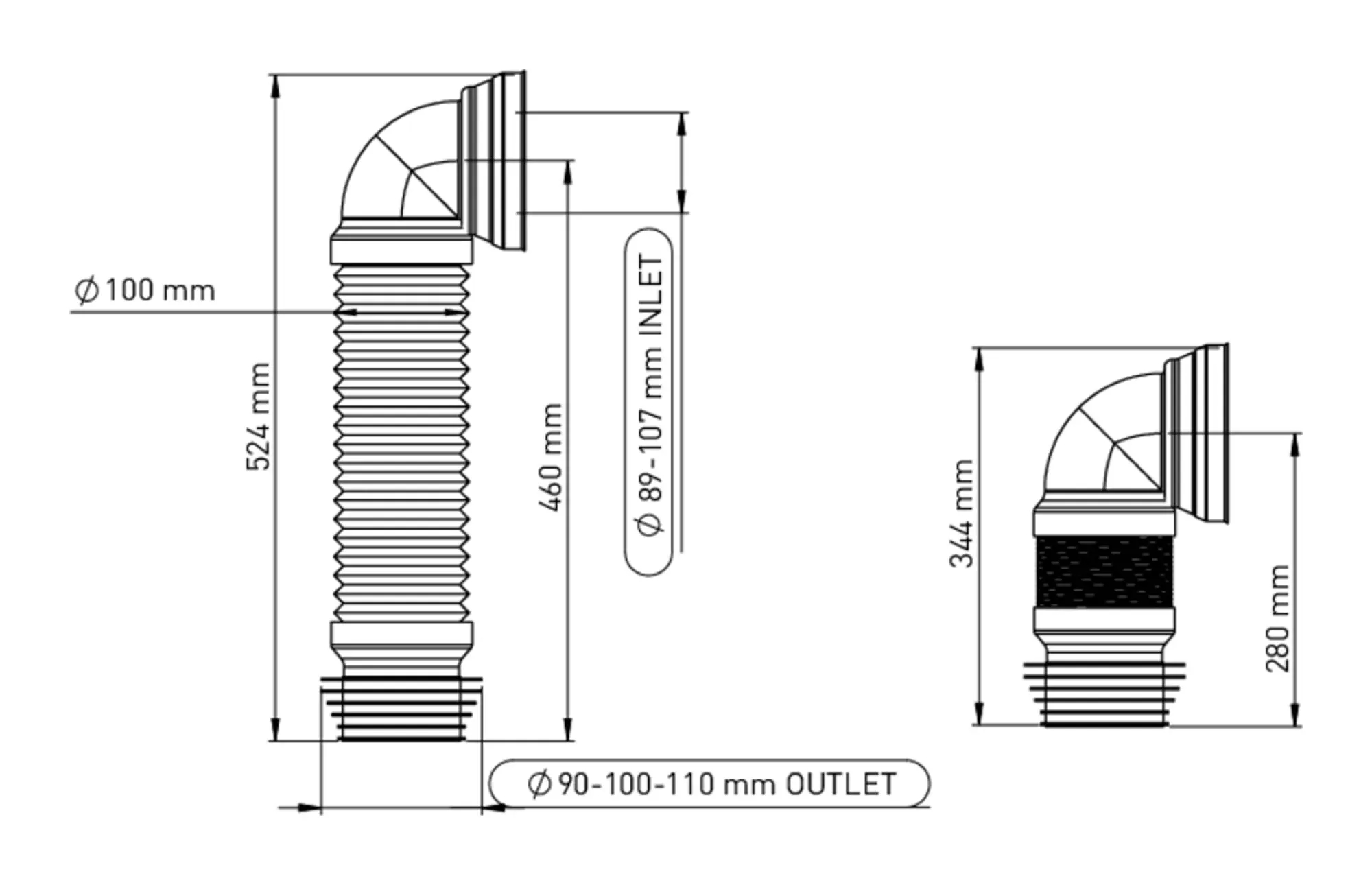 Отвод для унитаза гофрированный Nova 110 мм. под углом 90° с манжетой (L=500 мм.) (7044)