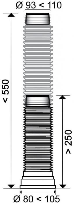 ГОФРИРОВАННАЯ ТРУБА ДЛЯ УНИТАЗА D 110 ММ L250-550 ММ.