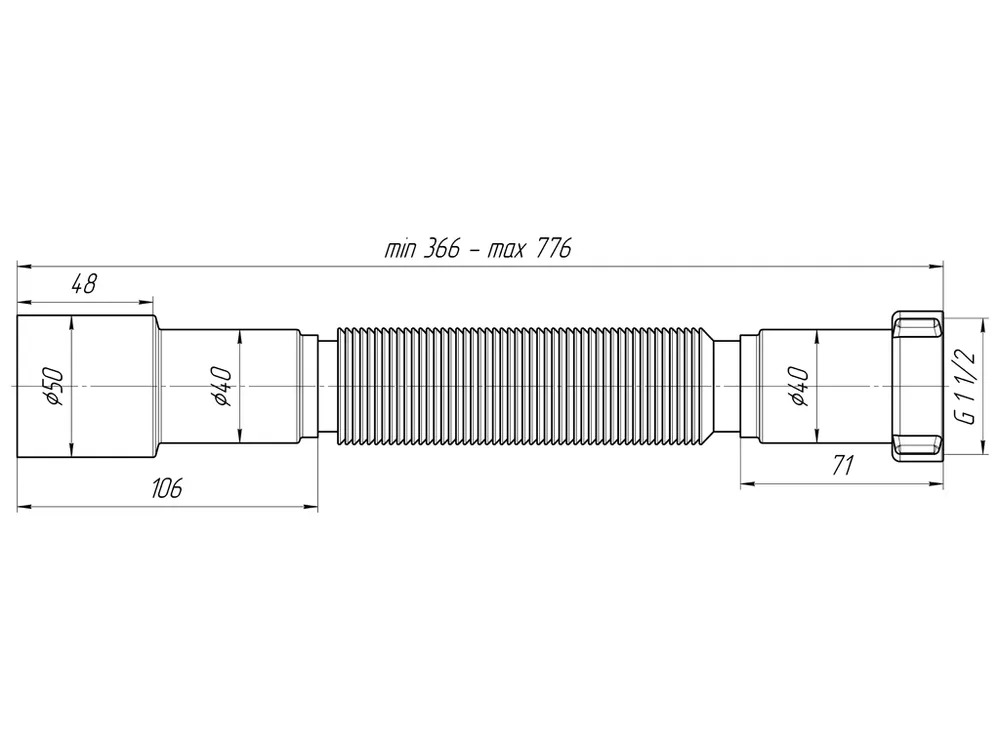 Отвод гофр. переходной 1 1/2"*40/50 АНИ (366-776 мм.) АНИ пласт (K106)