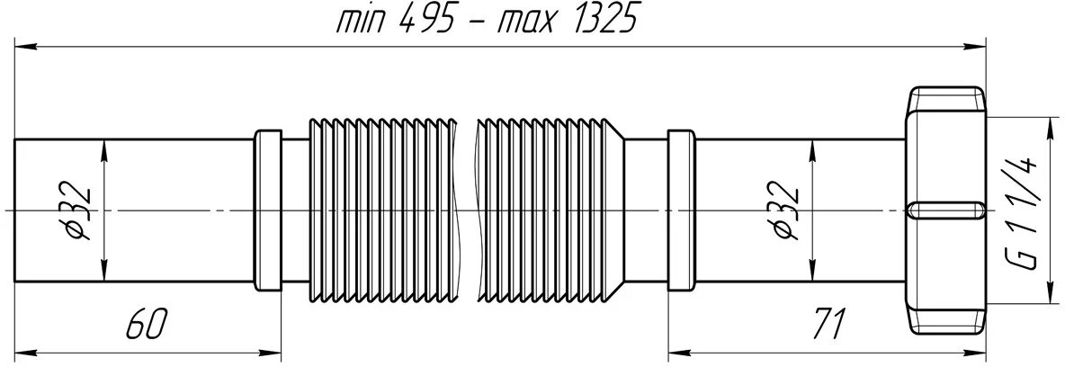 Отвод гофр. переходной 1 1/4"*32 АНИ удлиненный (495-1325 мм.) АНИ пласт (K213)