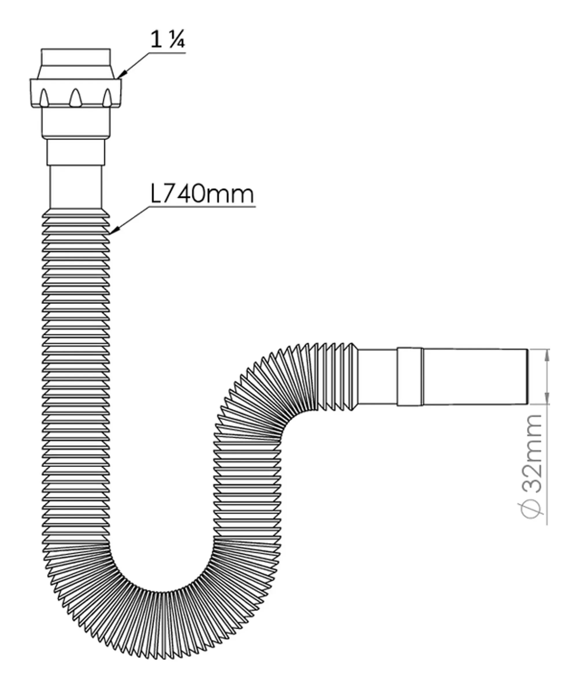 Отвод гофр. переходной 1 1/4"х32 (740 мм) Nova (c конусной прокладкой) (1321)
