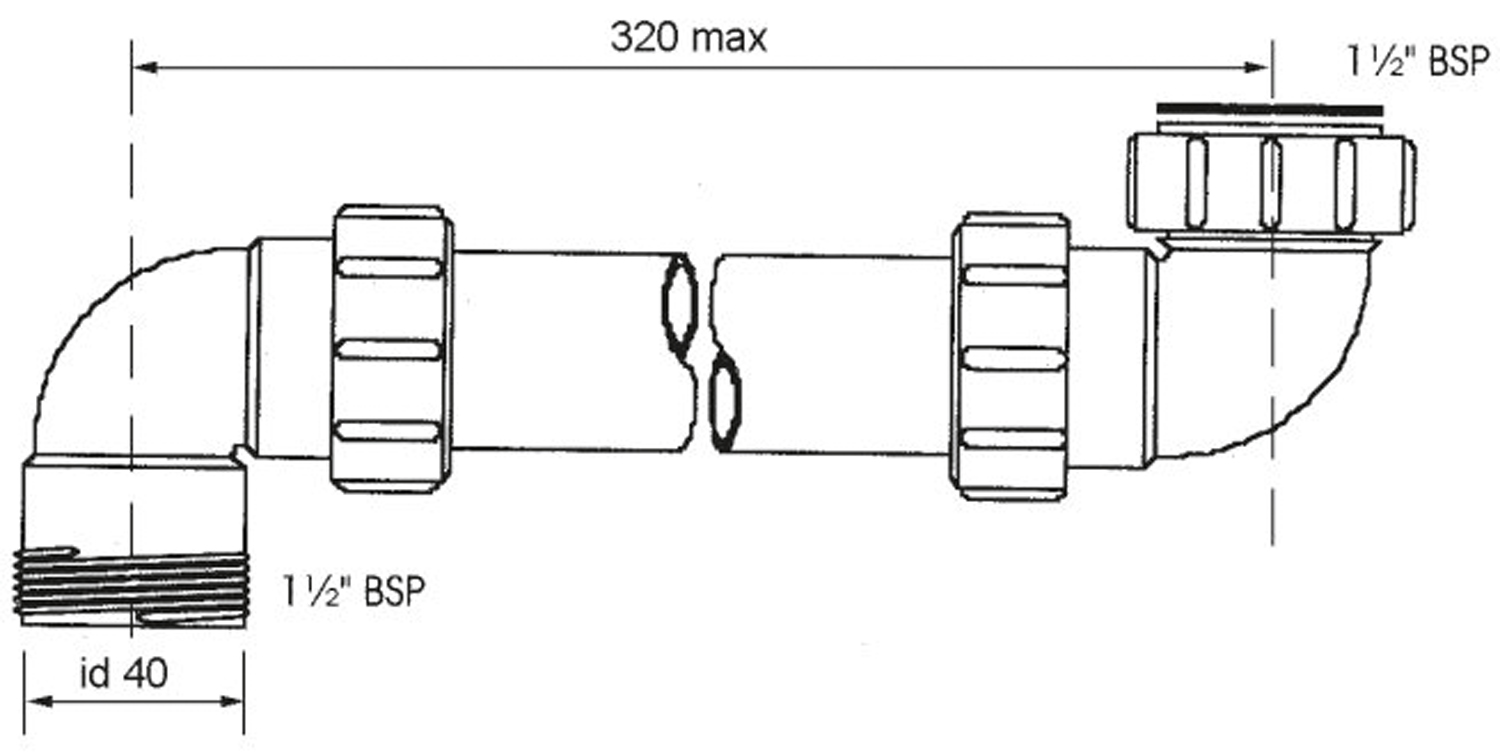 Отвод McAlpine S-образный (белый) 40 мм.*90 гр. L-320 мм, с возможностью удлинения (HC13L)