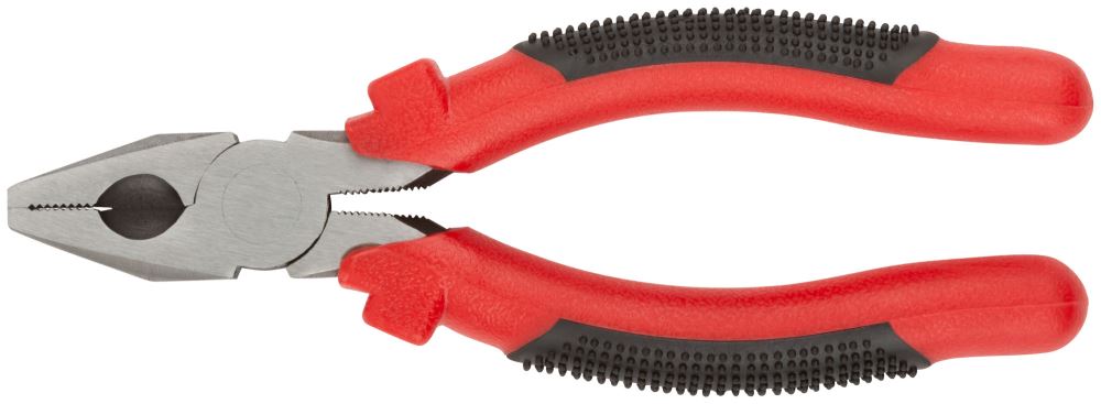 Плоскогубцы комбинированные. Материал: усиленная инструментальная сталь, молибденовое антикоррозийное покрытие, мягкие прорезиненные ручки. Упаковка: пластиковый подвес.