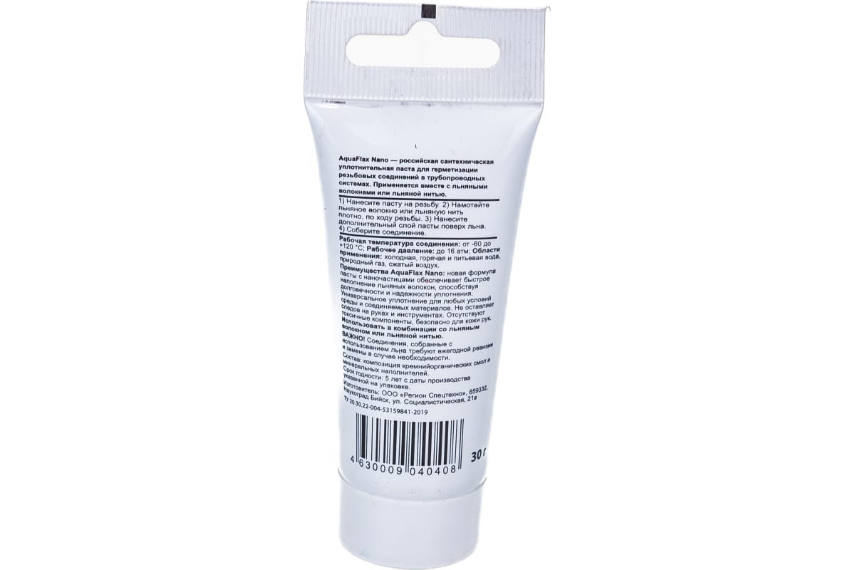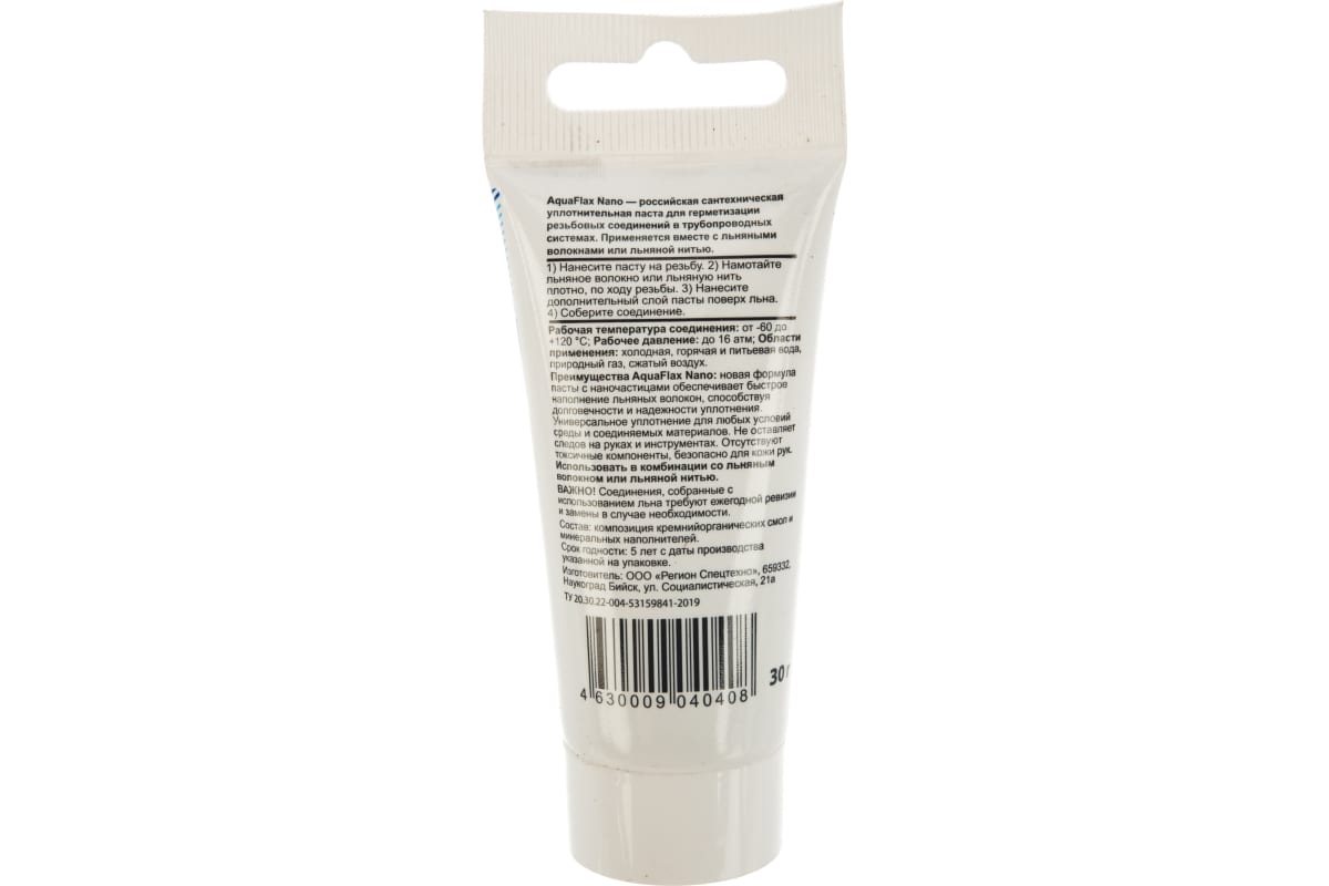 Уплотнительная паста Aquaflax nano тюбик 30 грамм 04040 предназначена для герметизации резьбовых соединений в различных средах. Применяется только вместе со льном! Специально разработанная формула пасты AQUAFLAX NANO имеет наночастицы, которые позволяют быстро и эффективно проникать в структуру льна и надежно уплотнять резьбу. Ее формула не пачкает инструмент и руки мастера и легко стирается без использования воды.