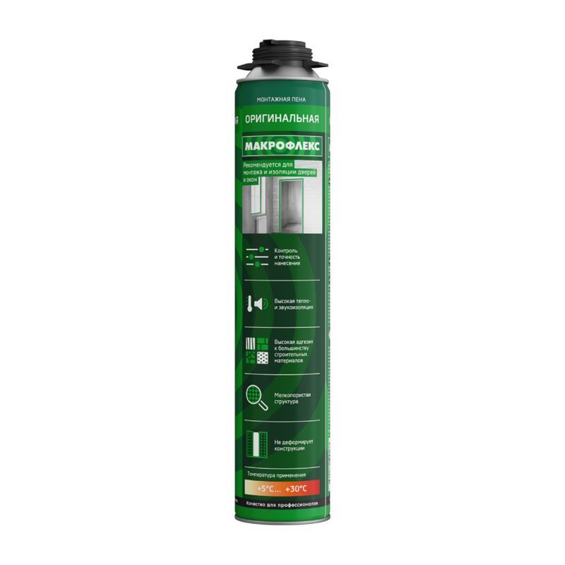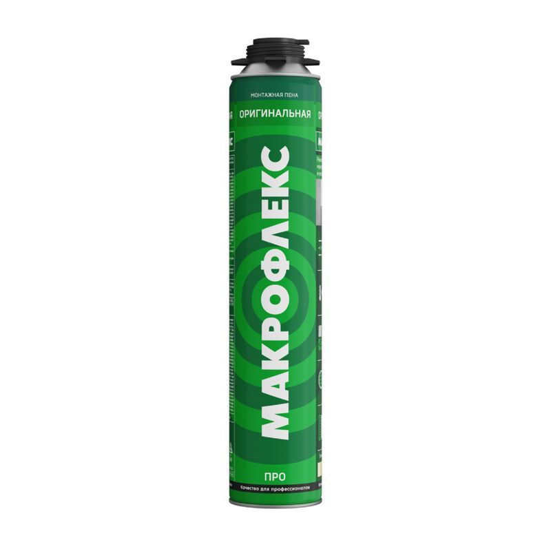 Makroflex Оригинальная PRO - высококачественная однокомпонентная, отверждаемая за счёт реакции с влагой воздуха, полужёсткая полиуретановая пена с превосходным соотношением открытых-закрытых ячеек и высокой механической прочностью.