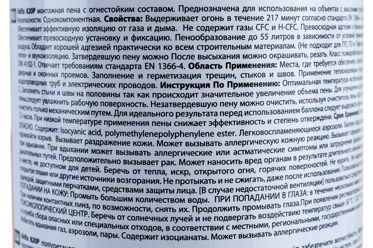 Характеристики Akfix Огнестойкая профессиональная монтажная пена 820P B1, 1000 гр. FA025: