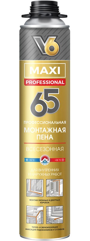 Пена монтажная профессиональная V6 MAXI 65 800 мл. (всесезонная) (01-01-53)