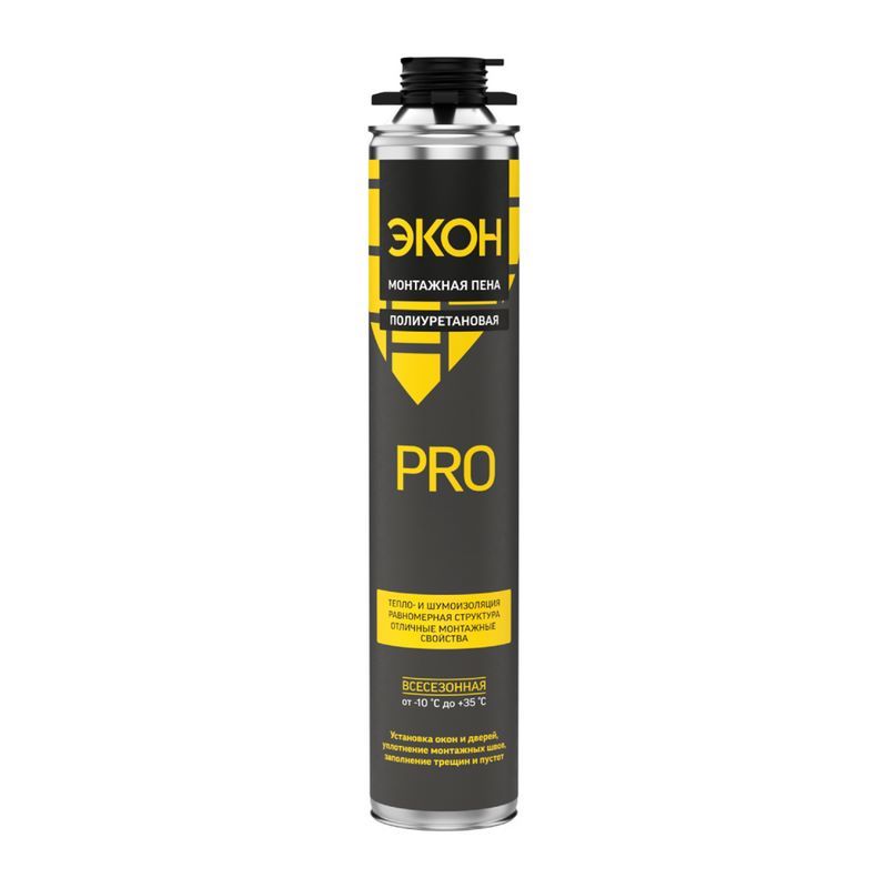 Профессиональная монтажная всесезонная пена представляет собой готовую к применению однокомпонентную полиуретановую пену, затвердевающую под воздействием влажности воздуха. Пена - саморасширяющийся продукт, увеличивающийся в процессе застывания в два раза. Экон имеет прекрасную адгезию к дереву, бетону, камню, металлу и т.д.