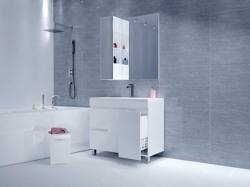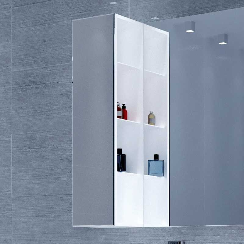 - Функциональный шкаф-пенал с зеркалом, не утяжеленный дверями и фурнитурой.